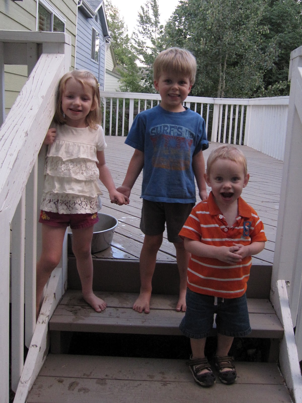 They would get in and rock it -- riding the waves! (It's a three-wheeled jogger, so it was very tippy going back and forth on that front wheel.) Then they would jump out and get in the "water" to swim. I love when they find a shared activity that they can have fun doing together. I don't think Sam totally gets what's going on, but he was laughing and having tons of fun doing what Ava was doing. Cuties!